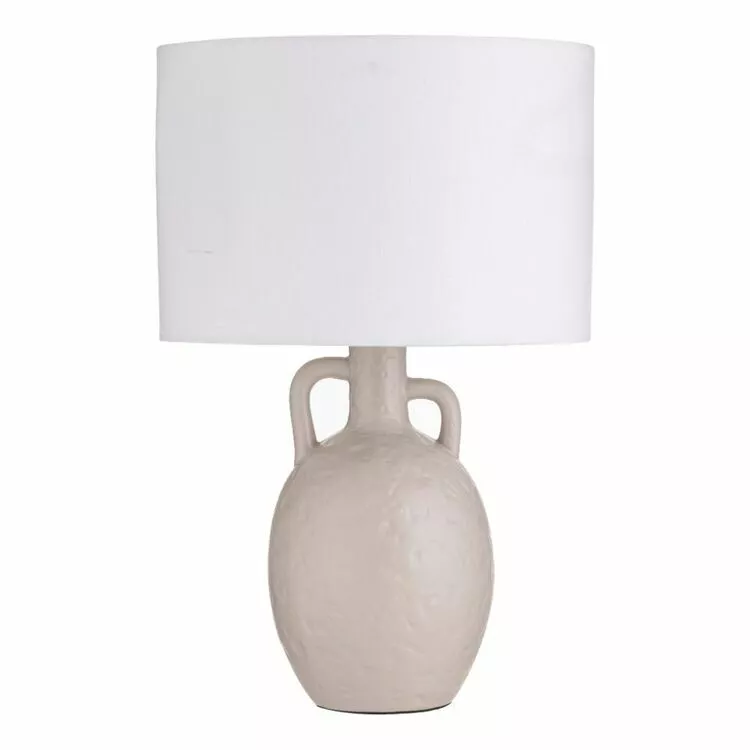 Elevate the charm and vibrance of your home using the Amalfi Hazel Ceramic Table Lamp. This Hazel Table Lamp is both gorgeous and practical with its design. The body is made from ceramic in a grey colour array. It has an organic dimple finish and character-enriched handles. The material shade complements it perfectly. The Hazel Ceramic Table Lamp is great for narrow side tables or smaller spaces. Display this stunning Ceramic Table Lamp in your home for a beautiful approach – try placing on a bedside table, shelf or office desk. .