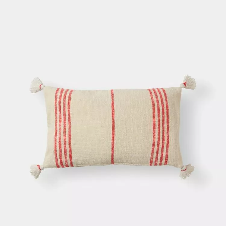 Hand woven from 100 % cotton by skillesd artisians & its features contrasting tones and beautiful woven texture with soft feel, the Chyka Addison Woven Cushion 35 x 60cm is a gorgeous addition to update your existing décor in your bedroom or living room! Featuring bright stripe pattern over a gorgeous beige base with attached tassels, these cushions will make your living or bedding space stand out this season! Shop the Chyka collection at Harris Scarfe.