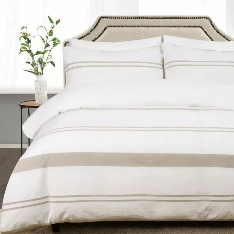 Jane Lamerton Sydney Jacquard Quilt Cover Set will give your bedroom the perfect minimalist update this season. Featuring a light beige horizontal striping pattern over a white base, this quilt cover set is a simple and versatile design will suit any style of bedroom dΓ©cor. Made out of comfortable and soft cotton, it is breathable and useable all year round. Elevate your home with the Jane Lamerton bedding range at Harris Scarfe today.
