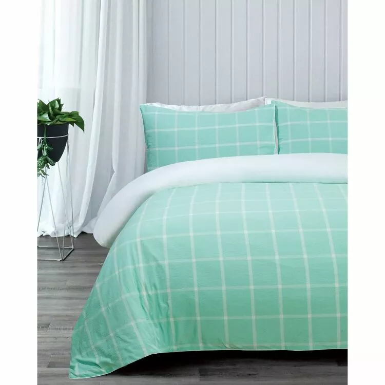 The Jayson Brunsdon Homewares Hurstbridge Jacquard Quilt Cover Set is the perfect bed linen to elevate your bedroom with a minimal grid design contrasted with a refreshingly bright mint colour. Made from soft-to-touch cotton fabrication, this quilt cover set is also machine washable for added ease and convenience. Accessorise this set by pairing this set with items from an extensive range of contemporary European pillowcase and home decor pieces, available at Harris Scarfe today.