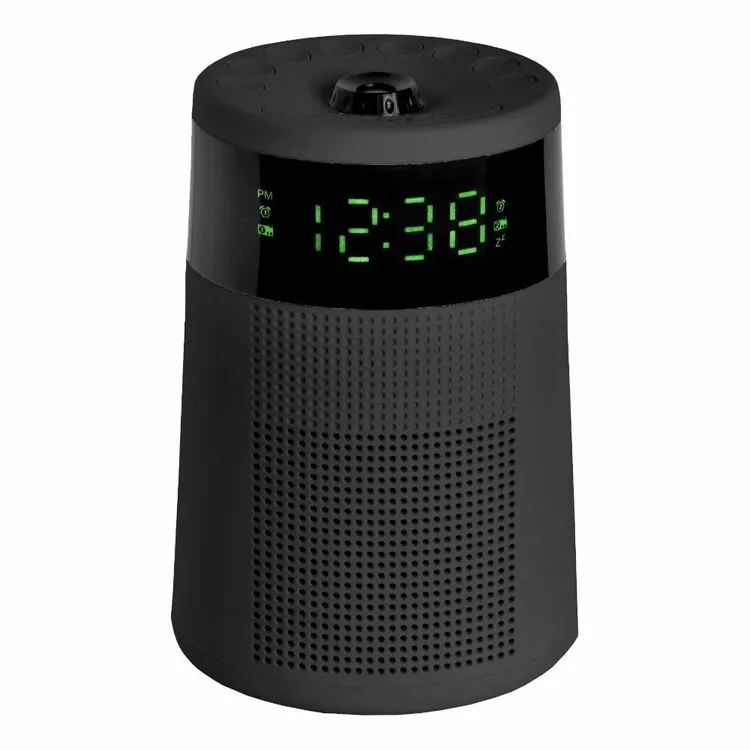 The simple way to modernise your morning is here with the Lenoxx Sleek Projector Clock Radio CR72. Experience an innovative wake-up call, with this clock radio with a difference. Within its modern, cylinder design is an in-built projector, ready to help you start your day with a bright time display on your ceiling. Enjoy AM or FM radio, 20 storable pre-set radio stations (10 for AM stations and 10 for FM stations) and a dual alarm system, for the perfect functionality of a clock radio. Set the alarms with a buzzer sound, which illuminates a bell icon on the display or set with radio tunes, which illuminates a music note icon on the display.