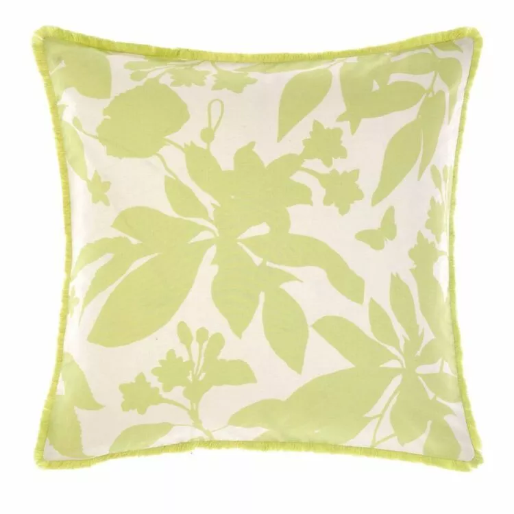 The Linen House Toulon Cotton Cushion 50 X 50 cm features the outlines of archival tropical motifs of flowers and leaves in a lime-yellow colour. This pillow also has fringed edges to add a bit of flair. Put this on your couch, armchair or bed for a nice bright pop of colour to brighten up the atmosphere in the room. This pillow also forms a perfect match with the Linen House Toulon Cotton Quilt Cover Set.