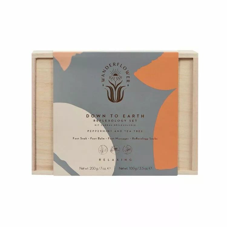 Prioritise time for some much needed self-care with the Wanderflower Reflexology Set. The philosophy of reflexology considers that the areas of the foot correspond to different organs and systems of the body. Indulge in this soothing ritual designed to encourage relaxation and relieve stress while leaving you feeling silky smooth. Begin by gently massaging your feet with the nourishing balm, paying particular attention to the heels and other areas where the skin is dry or hard. Put on your reflexology socks and let sit for at least 5 minutes for the balm to penetrate your skin. Then use the wooden roller and gently massage your feet, locate the corresponding organs and body systems shown on your socks and apply the desired pressure. Finally, truly unwind by putting your feet in a mix of hot water and foot soak. Find everything you need to personalise your home, in-store and online at Harris Scarfe.